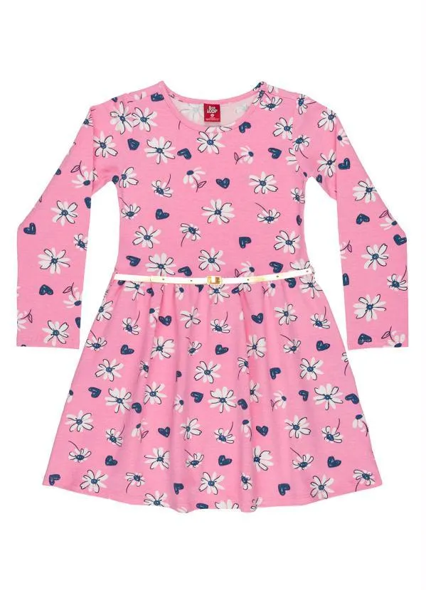 Bee Loop - Vestido Manga Longa Infantil Rosa