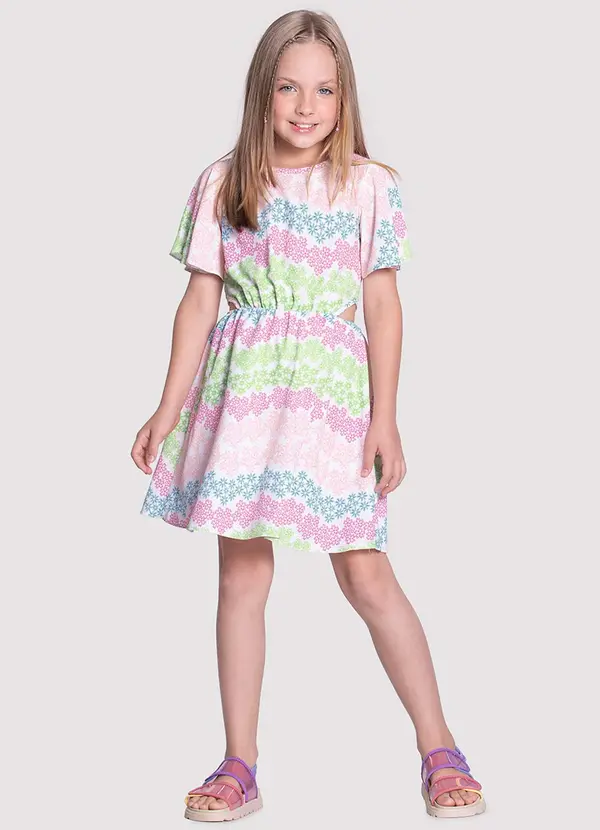 Alakazoo - Vestido Midi Infantil em Tecido Plano Estampado Rosa