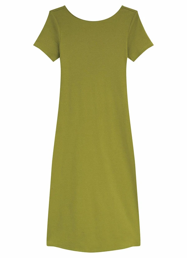 Malwee - Vestido Mídi Justo Acinturado Canelado Verde