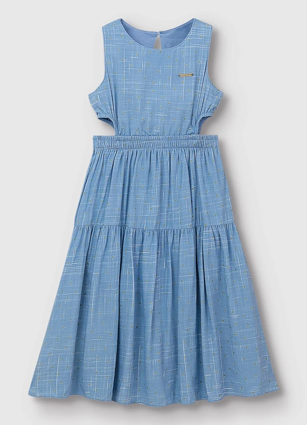 Carinhoso - Vestido Mídi Poá Metalizado Azul Pastel