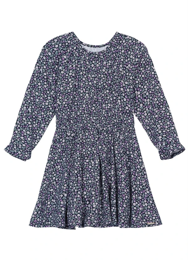 Carinhoso - Vestido Mini Print Floral Manga Longa Azul0