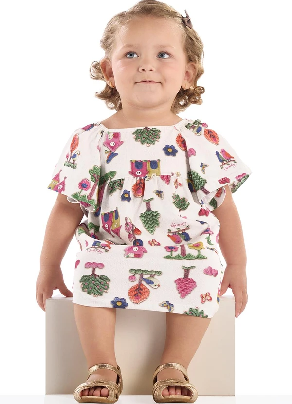 Quimby - Vestido para Bebê em Cotton Branco