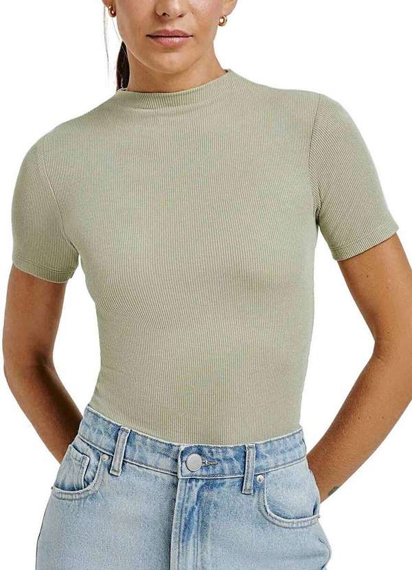 Características: Blusa Básica Feminina Manga curta, gola alta em malha canelada Confeccionada em malha canelada de viscose com elastano Modelagem ajustada no corpo e mangas curtas Uma peça básica, mas que transmite toda a leveza e conforto Combine com calças jeans ou estampadas e monte looks sofisticado e com muita personalidade Composição: 98% Viscose e 02% Elastano