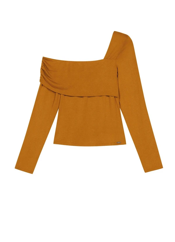 Marialícia - Blusa Feminina Ombro Só com Franzido Marrom