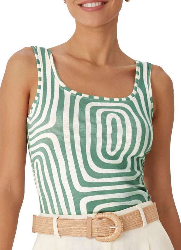 Características: Blusa Feminina Regata Confeccionado em tecido ribana linho Modelagem ajustada ao corpo, valorizando a silhueta com caimento mais justo e feminino Alças largas, proporcionando conforto, sustentação e versatilidade para diferentes combinações Decote redondo, clássico e discreto, ideal tanto para looks casuais quanto para composições mais arrumadas Diferencial, algumas opções contam com rapport aplicado com pigmento natural, trazendo um toque sustentável e exclusivo para estampa Composição: 64% Algodão, 29% Poliéster, 05% Linho e 02% Elastano
