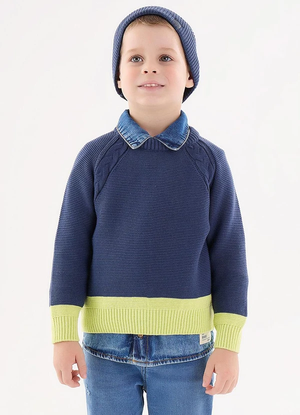 Up Baby - Blusão em Tricô Infantil para Menino Azul