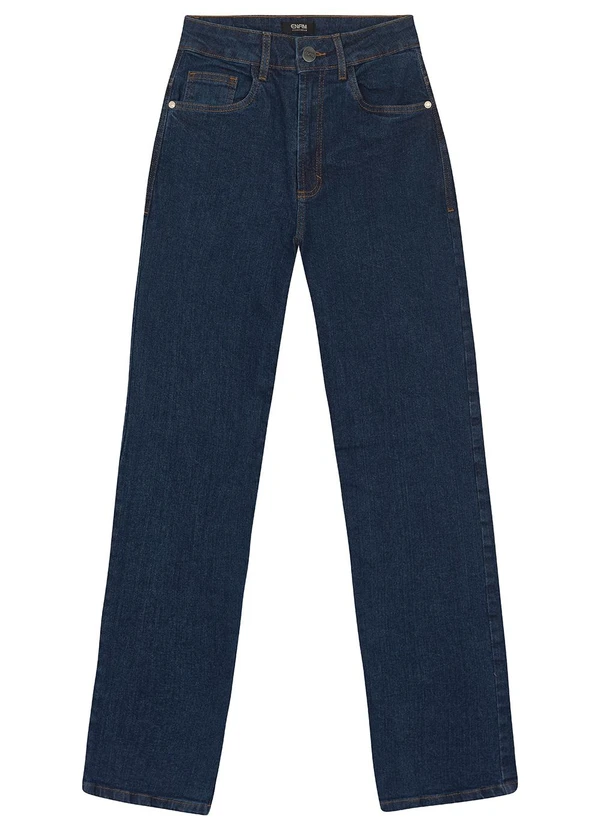 Enfim - Calça Jeans Reta Cintura Alta Azul Escuro