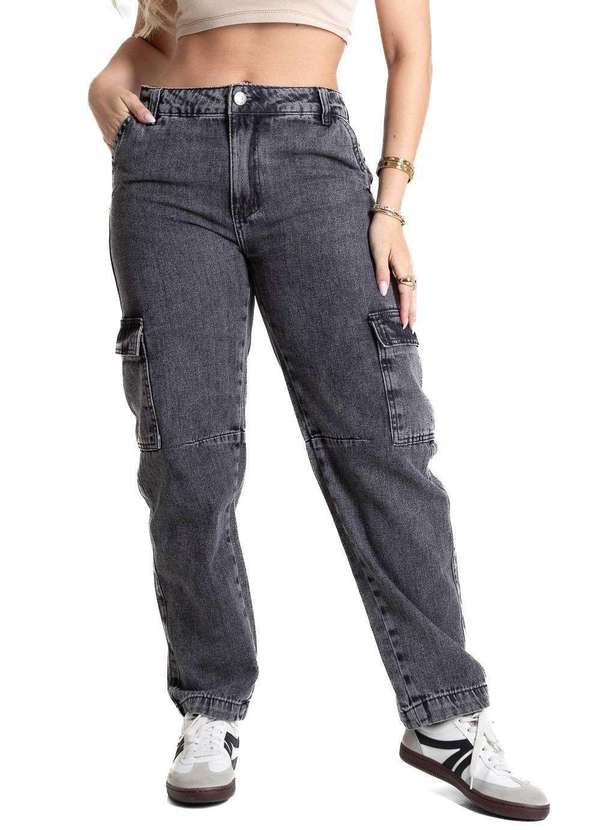 Calça feminina confeccionada em jeans. A peça tem a modelagem barrel, com o caimento é confortavel solto ao corpo. Cintura alta Fechamento através de um botão e zíper Bolsos frontais faca e posteriores funcionais acompanha bolsos laterais cargo Barra simples Tecido: Jeans Tipo de Lavagem: color Cor: cinzaComposição: 100% ALGODÃO