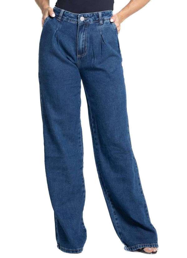Calça feminina confeccionada em jeans. O modelo possui cintura super alta, gancho no lugar e caimento amplo da coxa até a barra. Cintura alta Fechamento através de um botão e zíper Bolsos frontais e posteriores funcionais Barra simples Tecido: Jeans Tipo de Lavagem: Azul Cor: AzulComposição: 100% ALGODÃO