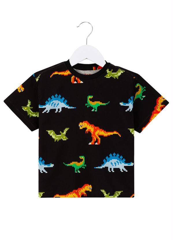 Bento - Camiseta Menino de Malha Dinopix Preto