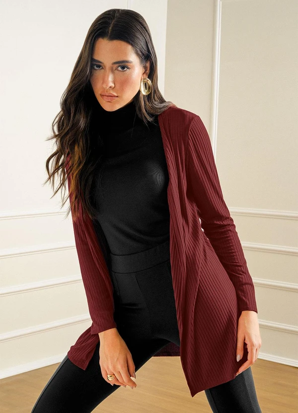 Endless - Cardigan Ribana Canelada Básico Vermelho