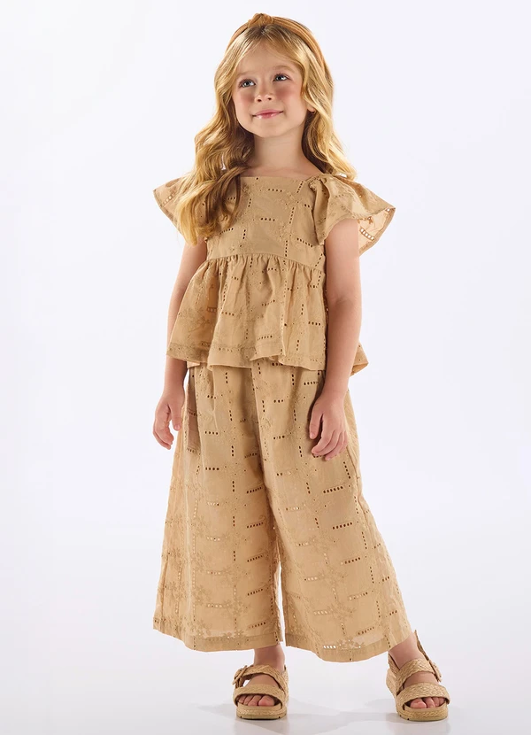 Up Baby - Conjunto Blusa e Calça Infantil Bege