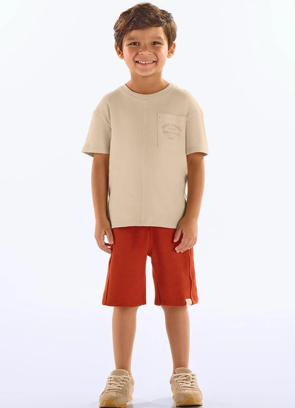 Up Baby - Conjunto Camiseta e Bermuda Infantil Bege