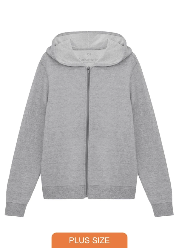Basicamente - Jaqueta Capuz Plus Masculina Mescla Claro