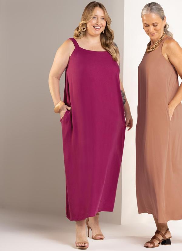 Marialícia - Vestido Feminino Midi Trapézio Rosa