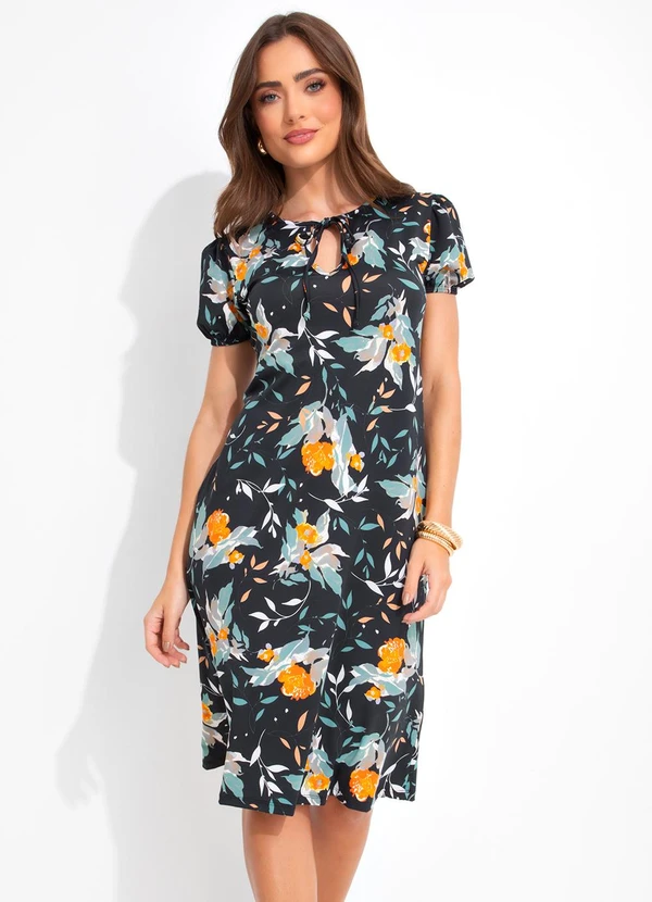Rosalie - Vestido Floral Preto em Malha de Poliéster