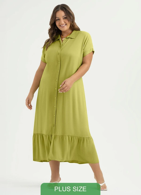 Cativa - Vestido Plus Size Midi em Viscose Verde