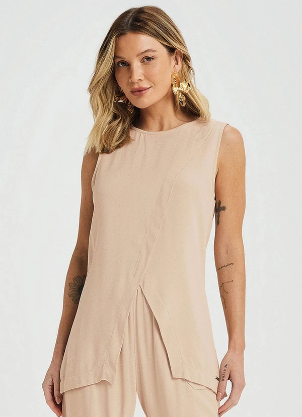 Marialícia - Regata Feminina Alongada com Transpasse Bege