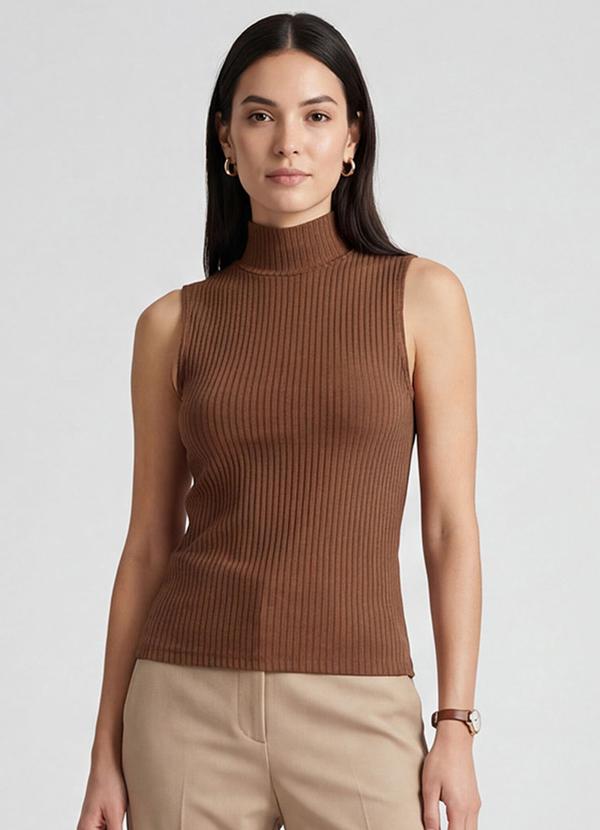 Infinita Cor - Regata Feminina Ribana Canelada Marrom