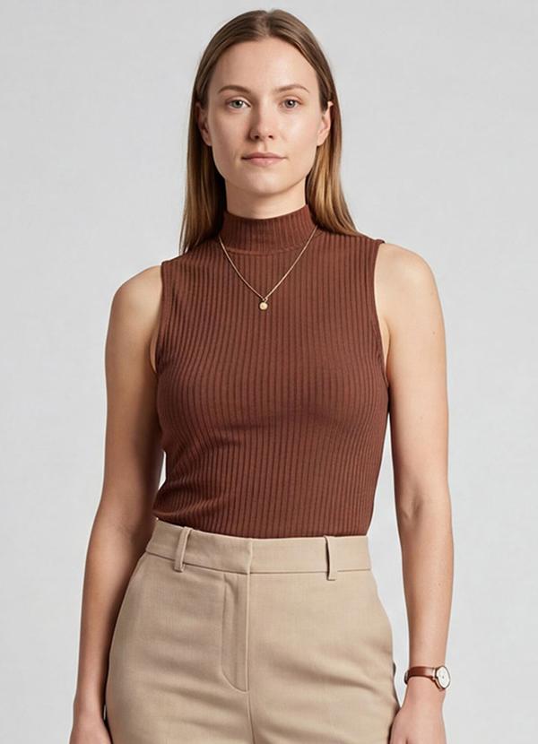 Infinita Cor - Regata Feminina Ribana Canelada Marrom