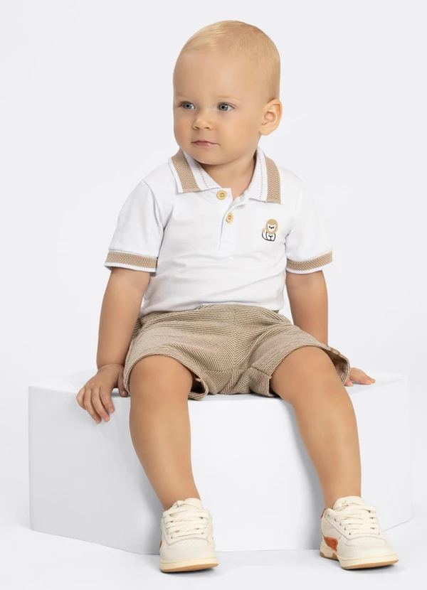 Alakazoo - Conjunto Bebê com Bermuda e Body Branco