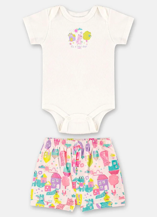 Up Baby - Conjunto Bebê Menina em Suedine Branco