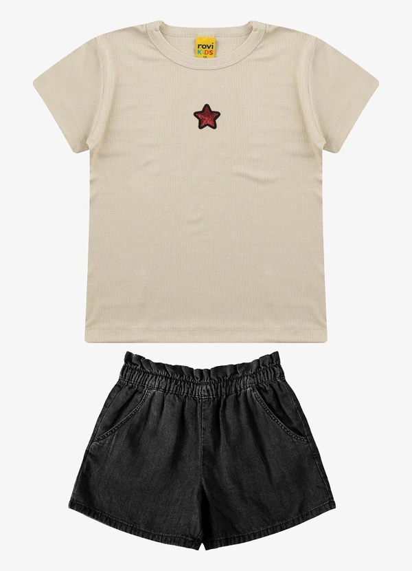 Rovi Kids - Conjunto Blusa com Shorts Feminino Bege