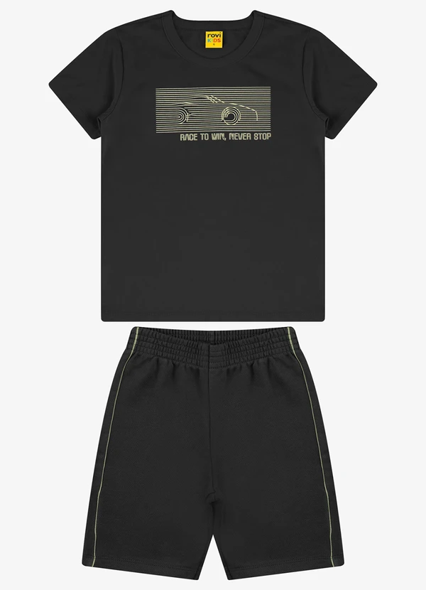 Rovi Kids - Conjunto Camiseta com Bermuda Preto