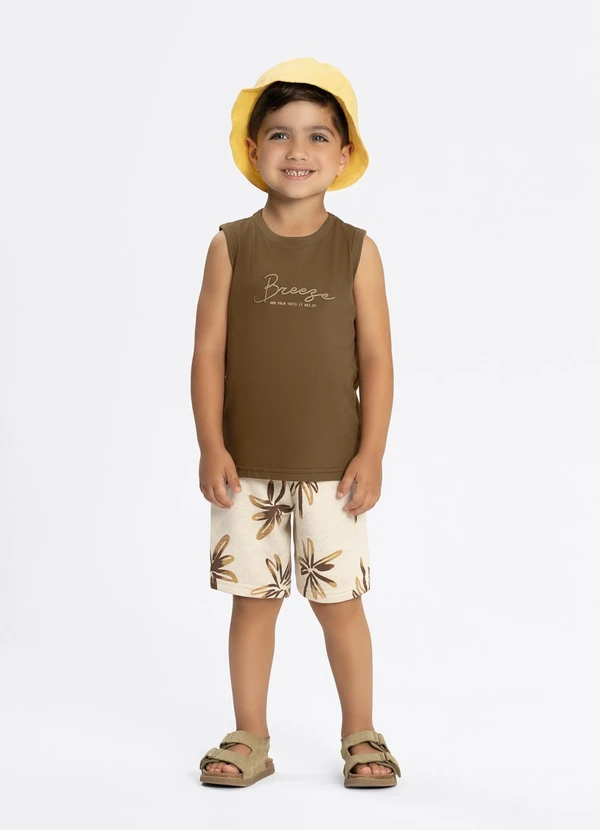 Alakazoo - Conjunto com Bermuda Estampada e Regata Bege
