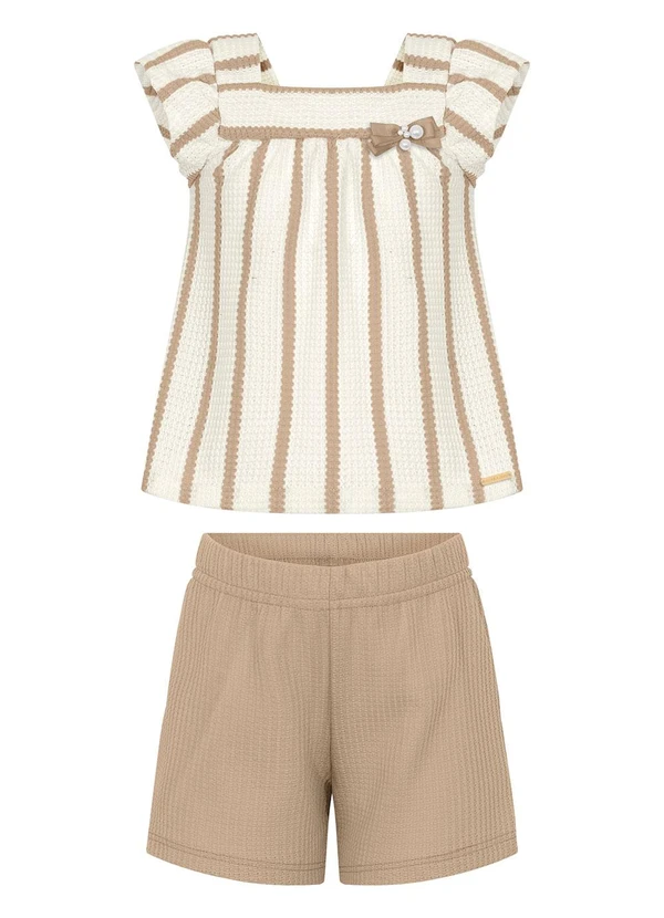 Alakazoo - Conjunto Menina Crochê com Blusa e Shorts Bege