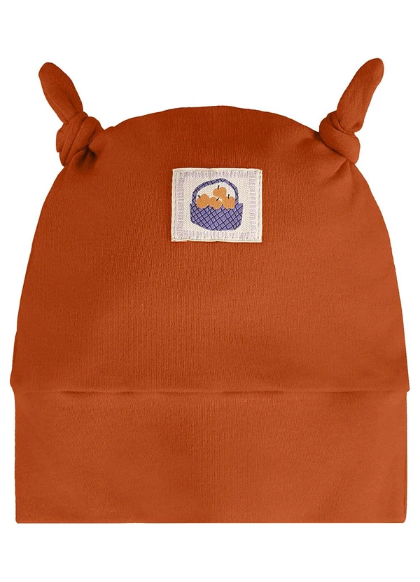 Três e Já - Touca Bebê Menina em Suedine Laranja