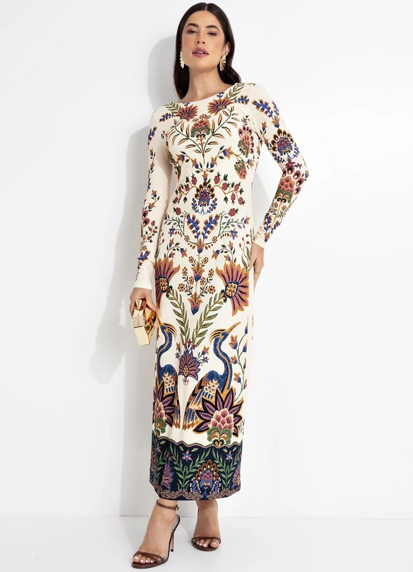 Farm - Vestido Decote U Costa Jardim Maravilhoso Bege