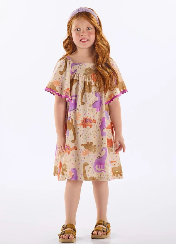 Up Baby - Vestido Infantil Algodão e Linho Bege