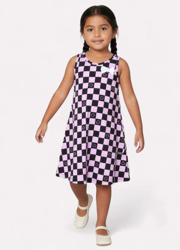 Kyly - Vestido Infantil Menina Xadrez Preto