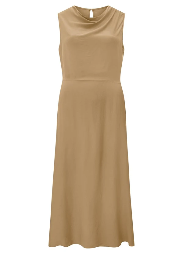 Lunender - Vestido Midi Chá com Decote Degagê Bege
