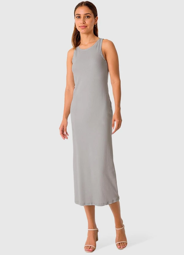 Malwee - Vestido Mídi em Ribana Cinza Claro