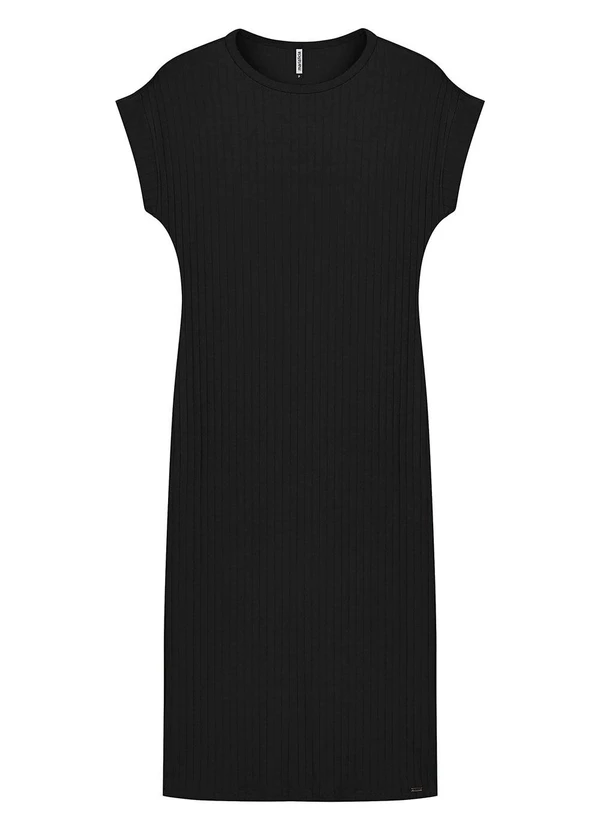 Marialícia - Vestido Midi Feminino Canelado Preto