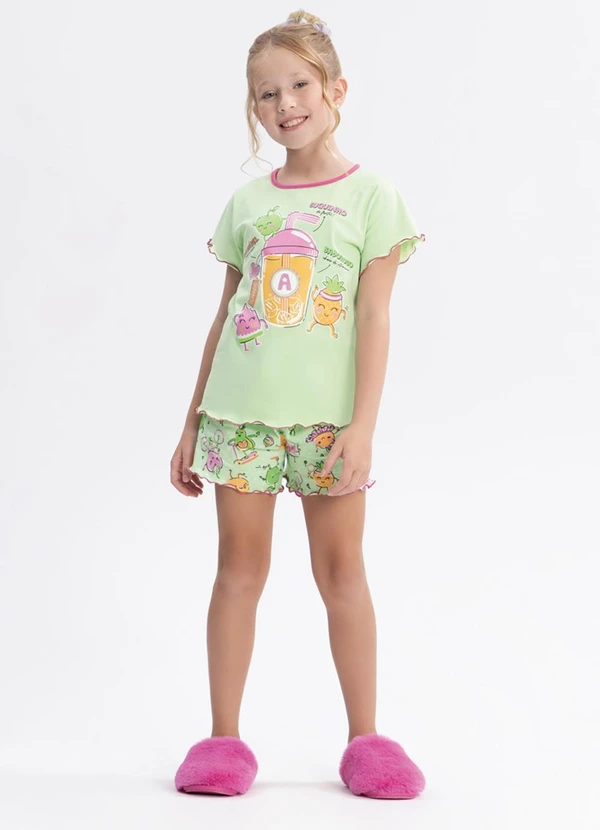 Alakazoo - Pijama com Shorts e Blusa de Mangas Curtas Verde