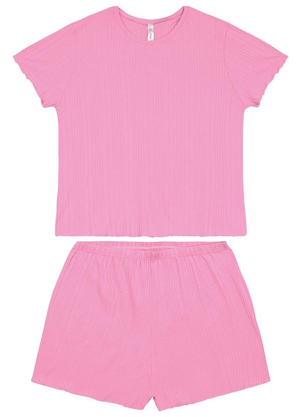 Malwee - Pijama Curto Canelado Rosa