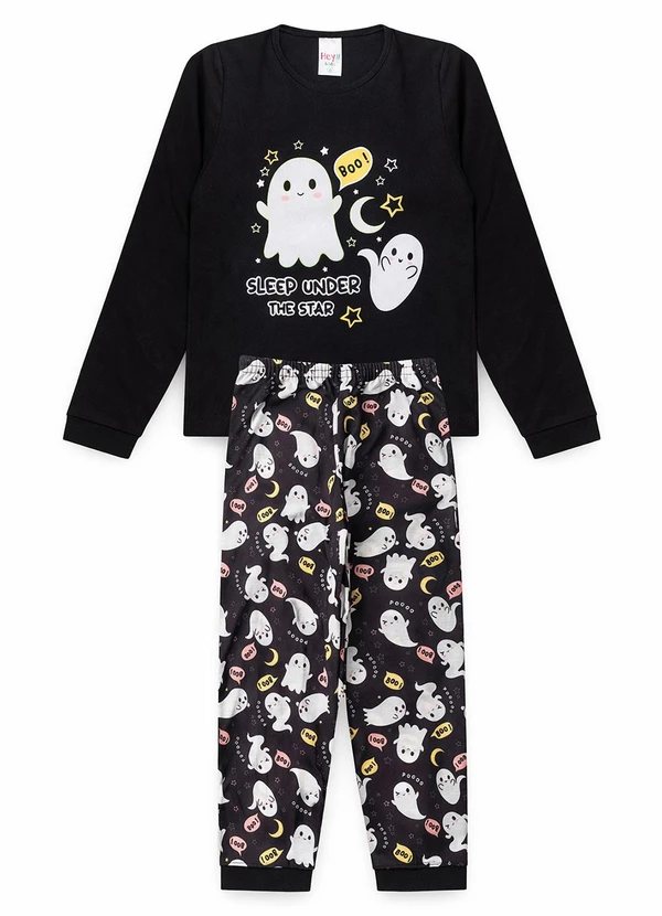 Atelie da Crianca - Pijama Feminino Inverno Boo Preto