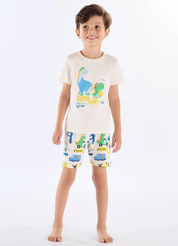 Up Baby - Pijama Infantil Camiseta e Bermuda Branco