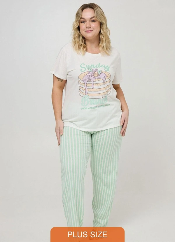 Rovitex - Pijama Longo Plus Feminino Meia Malha Verde