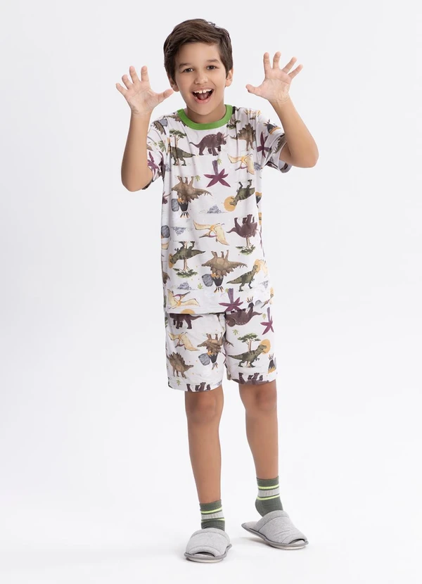Alakazoo - Pijama Unissex com Bermuda e Camiseta Bege