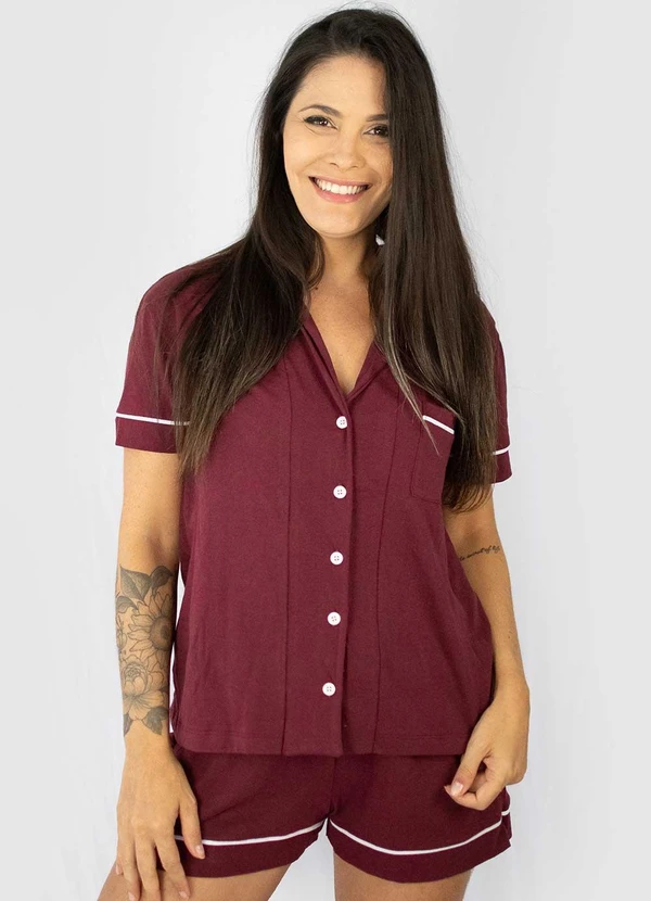 Piante Pijamas - Pijama Americano Manga Curta Algodão Vermelho