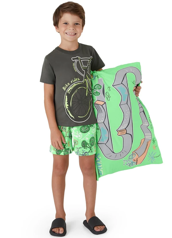 Malwee Kids - Pijama Bike e Fronha Cinza Chumbo