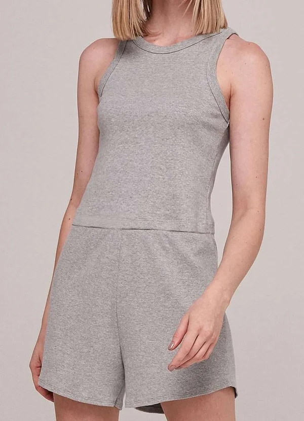Características: Pijama feminino curto. Modelo em ribana. Blusa modelo regata. Gola redonda. Shorts liso. Cintura com cós elástico. Modelagem ajustada ao corpo. Composição: 97% Algodão,03% Elastano.