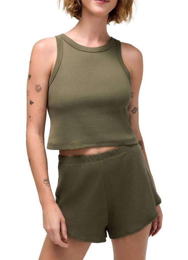 Características: Pijama feminino curto. Modelo em ribana. Blusa modelo regata. Gola redonda. Shorts liso. Cintura com cós elástico. Modelagem ajustada ao corpo. Composição: 97% Algodão,03% Elastano.
