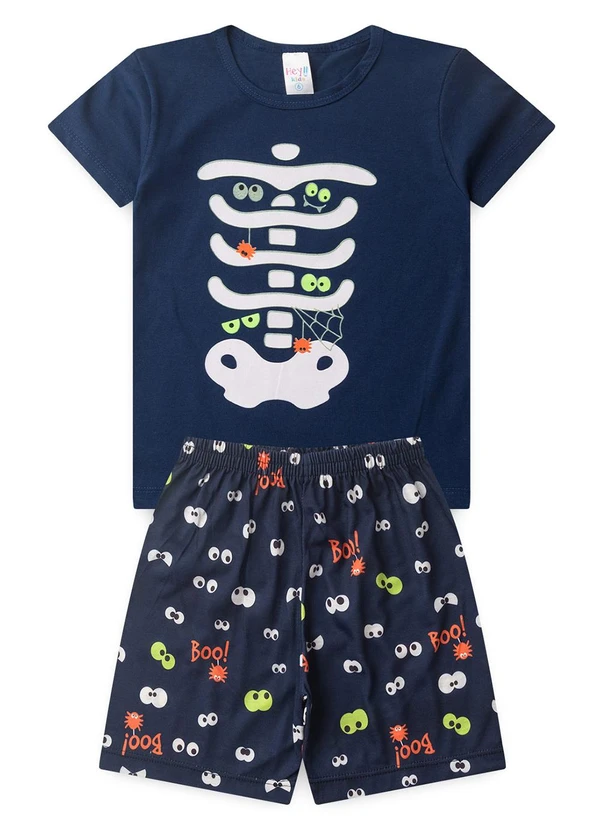 Atelie da Crianca - Pijama Masculino Verão Esqueleto Boo Azul