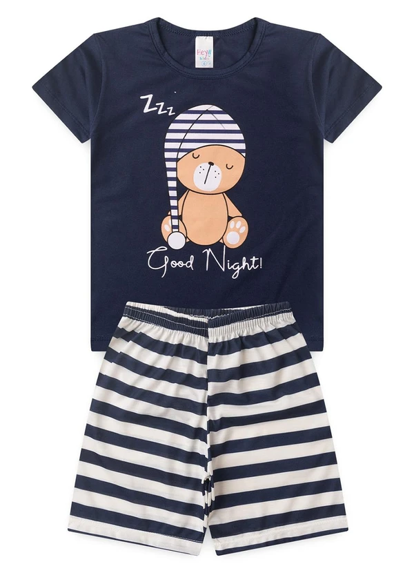 Atelie da Crianca - Pijama Masculino Verão Urso Touca Azul