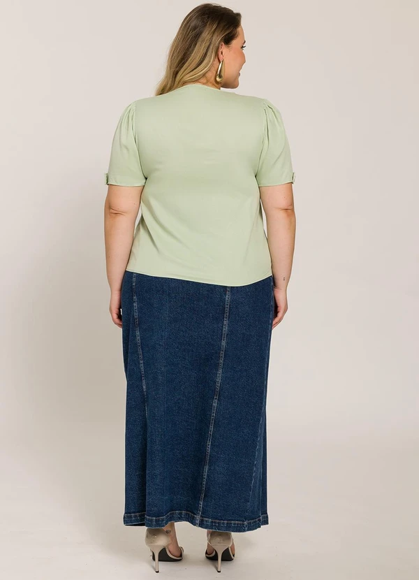 Lisamour - Blusa Decote V com Detalhe nas Mangas Verde